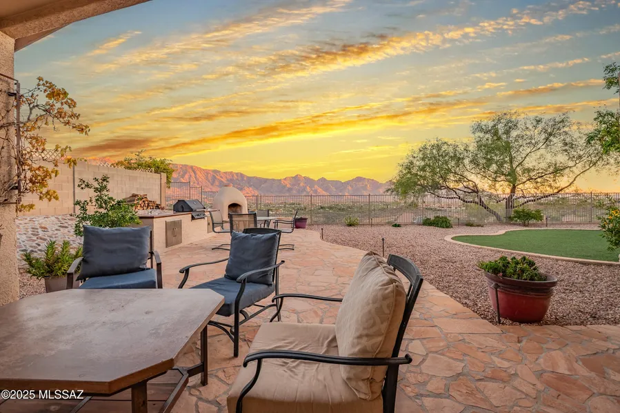An exceptional opportunity to own a highly sought-after premium view lot with panoramic Catalina Mountain views. Located on a quiet and elevated cul-de-sac lot. Enjoy the incredible colors of the famous Sonoran sunrises and sunsets, as they cascade over the valley & Mnts. This one-owner home offers a open-concept floor plan with a spacious kitchen that flows seamlessly into the great room. The master Ste is privately set, offering views from both the bedroom and bathtub. Step outside to a beautifully finished backyard featuring a built-in BBQ, kiva fireplace, artificial turf, and elegant desert landscaping. Additional highlights include a large walk-in pantry, large laundry w/ sink & storage, and three-car garage prewired with 50-amp service. Newer HVAC and H2O heater. A Must See!!