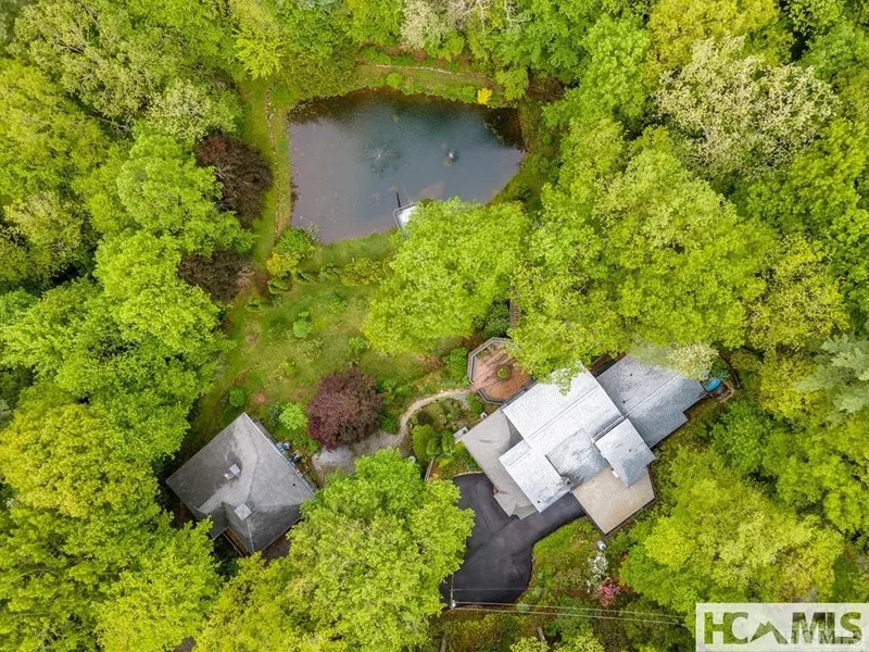 Take advantage of this rare opportunity to own two homes on a private pond. This is a fantastic option for a multi-family retreat or investment property. The larger home has two bedrooms, two full baths with 2 half baths set in a serene, mountain environment. Its floorplan and design offer potential buyers an exciting opportunity to customize and transform it into their dream home. As you step inside, you'll appreciate the abundant natural light that fills each space, creating a warm and inviting atmosphere. The house features a spacious interior that seamlessly leads to multiple levels of deck areas - both covered and open - perfect for enjoying the outdoors no matter the weather. There is a large finished lower level with living space, half bathroom and workshop. The smaller dwelling is a charming two bedroom, three bath home with a loft. The lower level has been finished off and there are spacious covered decks on both levels. The grounds are a true highlight, boasting lush, mature landscaping which surrounds a charming private pond equipped with lighting and two decorative fountains. This feature adds a peaceful and picturesque quality to the property, making it a tranquil retreat. The property sits comfortably with ample space for both living and entertaining. The lot itself is generously sized, providing ample room for potential expansions or enhancements according to your tastes and needs.