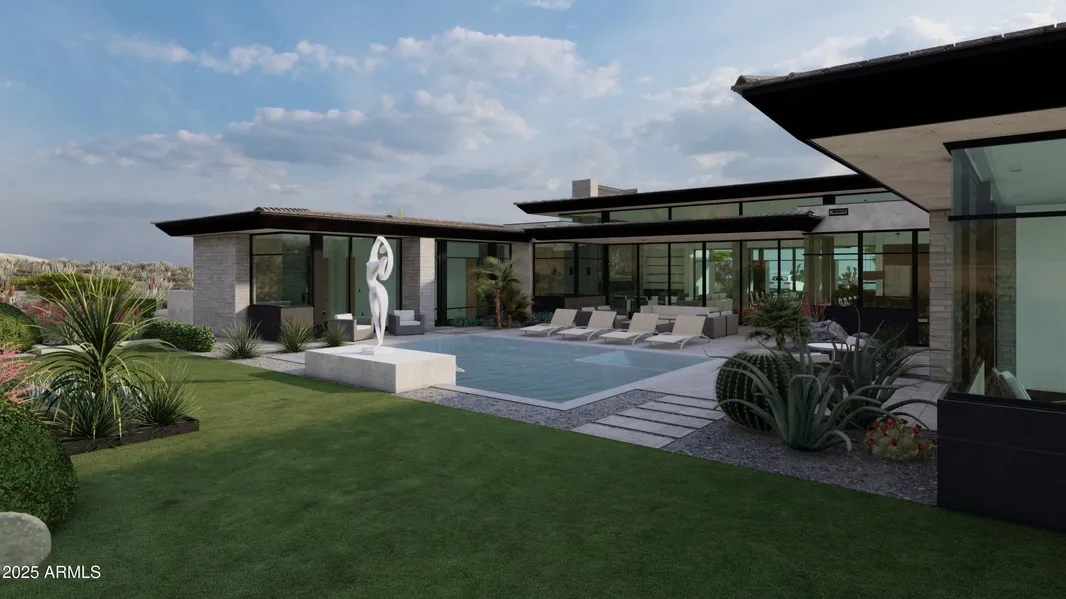 Poised on 5 acres of pristine desert landscape, this to-be-built architectural masterpiece offers sweeping, unobstructed views of Four Peaks, Troon Mountain, and the McDowell Mountains- along with twinkling city lights to the Southwest. Envisioned by Sari Terzi Designs and brought to life by True North Builders, the estate promises a seamless blend of modern elegance and timeless desert beauty. The main residence spans 5,949 square feet, offering sophisticated interiors and expansive indoor-outdoor living spaces. A separate 983 square foot casita provides comfort and privacy for guests or extended family. With every detail meticulously planned, this estate is more than a home- it's a sanctuary. Inquiries are warmly welcomed for those seeking unmatched luxury and serenity.