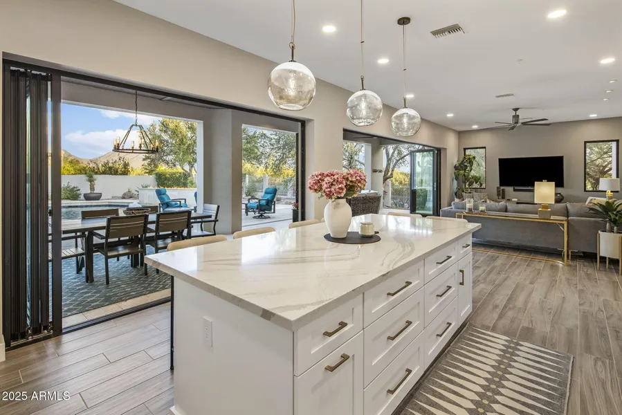 Pinnacle Peak Country Club Estates / Guard Gated Private Golf Course Community. Renovated Inside & Out, 3 Bed, 3 Bath, 3 Car Garage, 3085 sq ft Residence / Detached Two Bed, Two Bath, Full Eat-In-Island Kitchen, Laundry, Two Large NanaWall Accordion Glass Doors to the Covered Patio-Poolside 1507 sq ft Guest House / Total Living 4592 sq ft. South Facing Backyard / Mountain Views / Heated Pool/Spa / Water Feature w/Linear Fire Line / Owned Solar System / Whole-Home Reverse Osmosis System.