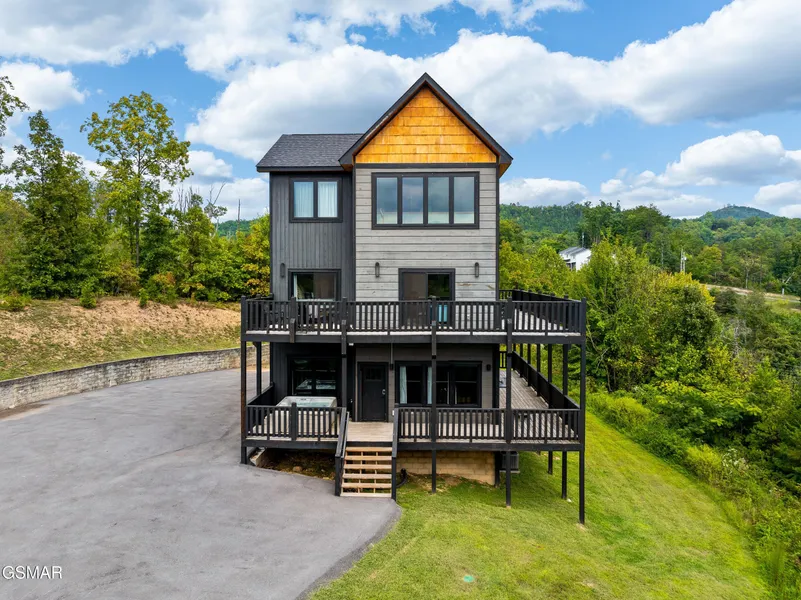 3 Bedroom Cabin with Game Room, Theater, Mountain Views and Prime Location Near Dollywood Projections of $120,000+! This well-maintained 3 bedroom, 3 bath cabin is located just minutes from Dollywood and the Pigeon Forge Parkway, offering convenient access to local attractions, shopping, and dining. Built in recent years, the home features a spacious layout that works well as a personal retreat or short-term rental. The open concept main living area includes vaulted ceilings, large windows for natural light, and warm wood finishes throughout. The cabin includes a dedicated game room with a pool table and arcade games, as well as a private theater room with tiered seating and surround sound. Outside, a covered deck offers a hot tub and views of the surrounding mountains. The kitchen is equipped with modern appliances and generous counter space, and the home comes fully furnished. Each of the three bedrooms is comfortably sized, with three full bathrooms to accommodate multiple guests or family members. The large yard provides outdoor space not often found in this area, and there is plenty of parking available for multiple vehicles. This property combines a desirable location with functional amenities, making it suitable for a variety of uses including a second home or rental investment.