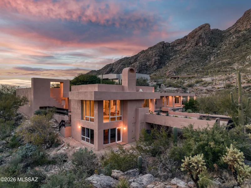 Set against a backdrop of protected mountain terrain in the highly sought-after Catalina Foothills, 7001 N Ina Place is a remarkable contemporary estate that embodies privacy, serenity, and elevated desert living. Located within an exclusive gated enclave of just ten residences, this property offers a rare level of quiet sophistication-where limited neighbors, expansive natural surroundings, and carefully preserved sightlines create an atmosphere that feels both secluded and refined. Spanning over 4,000 square feet, the home features 4 bedrooms and 4 bathrooms, thoughtfully designed to balance architectural drama with everyday livability. Expansive walls of glass frame incredible mountain and city views, allowing the vibrant colors of the Sonoran Desert to become part of the interior experience while filling the home with warm, natural light. The surrounding desert landscape is nothing short of breathtaking. Majestic saguaros, native vegetation, and rugged rock formations provide a constantly changing canvas of color and texture, while the home's positioning against the mountains delivers extraordinary privacy rarely found in foothills properties. Here, the stillness of the desert, star-filled night skies, and the gentle sounds of nature create a tranquil retreat from the pace of city life. Inside, the grand living spaces are both sophisticated and welcoming, ideal for refined entertaining or relaxed evenings at home. Custom built-ins showcase exceptional craftsmanship while adding both beauty and functionality throughout the residence. The seamless flow between spaces enhances the home's modern design and supports effortless gatherings. The chef-inspired kitchen opens naturally to the main living areas, encouraging connection while maintaining a sense of understated luxury. Whether hosting elegant dinner parties or enjoying a quiet morning coffee with the mountains as your backdrop, the home is designed to elevate everyday moments. The primary suite is a private sanctuary positioned to capture sweeping vistas while offering a peaceful escape. Generously sized secondary bedrooms provide comfort for family and guests, with flexibility for office space, fitness, or creative pursuits. Outdoor living reaches resort caliber with a stunning 75-foot lap pool set against uninterrupted mountain privacy perfect for invigorating swims or relaxing afternoons beneath Arizona's endless blue skies. Beautifully curated patio gardens weave through the outdoor spaces, complemented by mature citrus trees that add charm, fragrance, and seasonal abundance. The rooftop deck delivers a truly spectacular vantage point, where panoramic sunsets melt into glittering city lights and the Catalina Mountains rise in dramatic silhouette. It is an extraordinary setting for entertaining or quiet reflection alike. Car collectors and hobbyists will appreciate the spacious 4-car tandem garage, offering ample room for vehicles, storage, or recreational equipment without compromising the home's sleek architectural presence. Adding to the home's desirability is its placement within the highly regarded Catalina Foothills School District, known for academic excellence and strong community reputation an important consideration for those seeking both luxury and long-term value. Despite its deeply private setting, the residence remains conveniently close to Tucson's premier dining, upscale shopping, golf courses, hiking trails, and cultural amenities. This rare combination of accessibility and seclusion further distinguishes the property. 7001 N Ina Place is more than a home, it is a secluded desert sanctuary where striking architecture, pristine landscape, and timeless views converge. Opportunities to own within such an intimate gated community, surrounded by natural beauty and enduring privacy, are exceptionally rare.