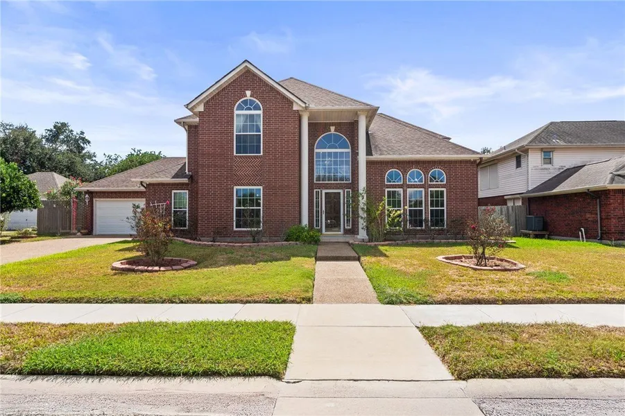 Welcome to 4513 Ammer Lake Drive, a beautifully designed 4-bedroom, 3.5-bath home nestled in the highly sought-after Lakes Subdivision on the Southside of Corpus Christi. Step inside and be greeted by soaring high ceilings and an abundance of natural light that fills the spacious layout. This home features two luxurious owner's suites-one upstairs and one downstairs-perfect for multi-generational living or hosting guests in comfort. The kitchen is the heart of the home, showcasing quartz countertops, updated cabinetry, a large island, and a breakfast bar-ideal for entertaining. Multiple living areas, including a large media/game room, provide endless options for relaxation and recreation. Enjoy the peace of mind that comes with spray foam insulation, a full security system with cameras, and a sprinkler system for easy lawn care. The low-maintenance backyard offers extra concrete space for gatherings, while the spacious garage features epoxy floors and ample storage for all your needs. With its brick exterior, impressive curb appeal, and thoughtfully designed interior, this home checks every box for style, comfort, and functionality. Don't miss your chance to live in one of Corpus Christi's premier neighborhoods-schedule your private tour today!