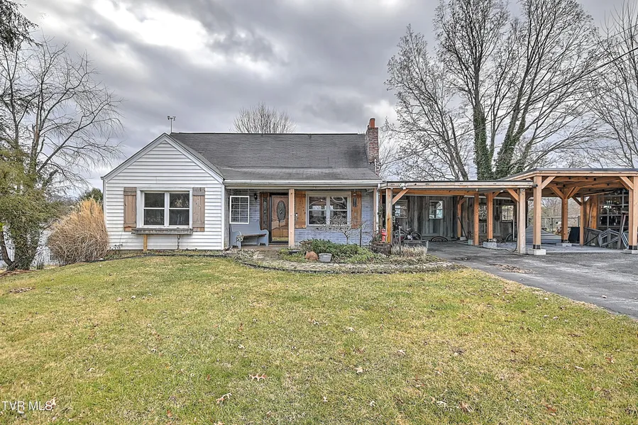 Beautifully updated cottage with brand new roof on a double lot with custom touches throughout close to downtown Bristol. Featuring an extra large living space with gas fireplace, built-ins, and wood ceilings. The adjacent kitchen is open to dining and features an island, gas stove, stainless appliances, and pantry. The primary suite is located on the main with a private bathroom with dual sinks and toilets, heated floors and towel rack, and tiled shower. Another bedroom and full bath are on the main, and the third bedroom is upstairs. The deck is the perfect spot for cookouts and gatherings with family and friends, and it overlooks the fenced back yard complete with a gazebo, grilling shed, potting shed, tree house, workshop space, and raised garden beds with water access. There's plenty of room for parking and the 3 bay carport offers covered parking and storage. The walkout basement offers additional storage and is a great space for a workshop. The water and sewer lines from house to street have been replaced, and the electrical panel is new as well.
