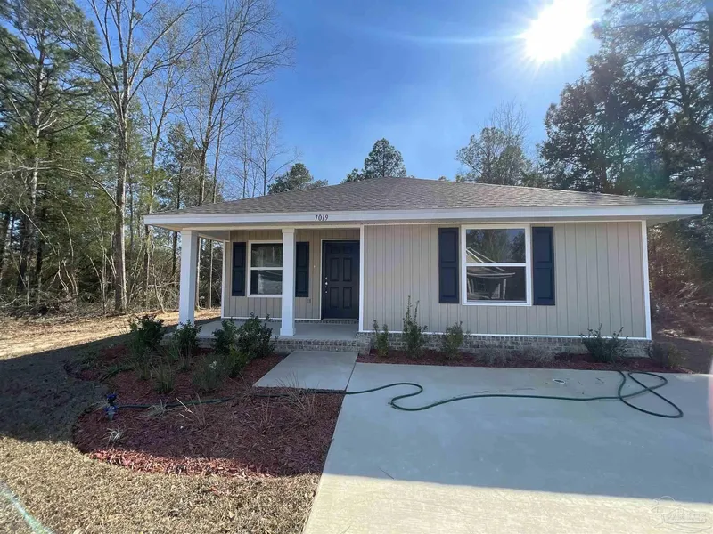 NEW CONSTRUCTION- Location, Location and Location. Brand new construction in the 32533 zip code and all the country living that one could ask for. At 1019 Brimwood Circle, you will find a beautifully constructed 1515 sq. ft. 3 bedroom 2 bath cottage home that has everything a first time buyer or renter is looking for. As you approach the home from the street, one will be wowed by the craftsman style cottage and earth tone exterior of the home. As you enter the home you will be amazed at the massive living room with ceiling fan. There is vinyl plank flooring throughout the home with carpet in the bedrooms only. The living room carries you into the kitchen and dining room. Within the kitchen there are stainless steel appliances and granite countertops. The Master Bedroom sits off of the dining room with a box ceiling, ceiling fan and spacious closet only accessible through the master bath. The Master Bath has a double vanity, shower/ tub combo along with a shelved alcove idea for storage. The two spare bedrooms are ample in size with plenty of storage in the closets. The two spare bedrooms are in different halls which adds to the privacy that is idea for teens or roommates. Within one hall, you have a single vanity and a shower/ tub combo. Within the hall as well there is the laundry area with washer and dryer hookups. Pictures May Not Be A True Representation