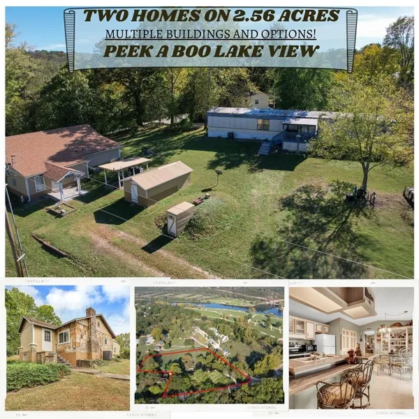 Do you like to fish? Do you like land? Why have one home when you can have two? Whether you're housing your whole crew, investing in rental income, or starting a tiny home project while living on-site--this property has it all!Let's start with the original 1949 home: featuring 2 bedrooms (one non-conforming), 2 living rooms, 2 full bathrooms, and generous storage. The kitchen has a cottage feel and a view out the front to enjoy while working on the dishes! Solid, comfortable, and inviting--perfect for everyday living or a peaceful retreat after a long day. Next, a 1993 Fleetwood mobile home offering 2 bedrooms, 2 bathrooms, and all appliances included. The sliding glass doors open to a deck where you can relax and take in a partial ''peek-a-boo'' view of Bull Shoals Lake. The property also includes two garages and two shops. One shop boasts a concrete floor, multiple power outlets, and a...