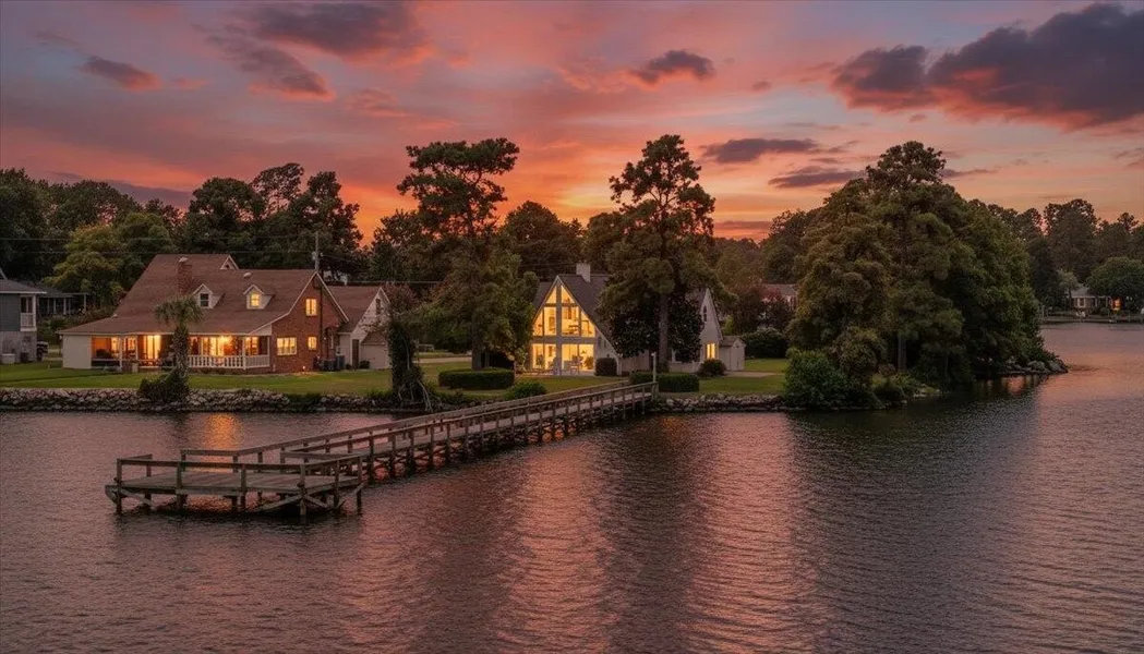 Whether searching for that perfect vacation home, a short term rental investment or you're just ready to live on the water full time, this quintessential lakefront property is truly one of a kind! Situated on almost 1/2 acre end lot, enjoy waterfront living with panoramic views from almost every room! From the focal fireplace stretching to the vaulted A-frame style ceiling, the great room is the show boat of the home. Watch coastal wildlife while sipping morning coffee or enjoy spectacular sunsets with a cocktail on your private dock. Fully remodeled, the home offers a modern kitchen, baths, tile plank flooring, 2 bedrooms downstairs & 2 more upstairs with a full bathroom on each floor. Neighborhood sandy beach access with fire pit & gathering area is steps from your front yard. Low HOA is only $100 annually. Established Eagle Point boasts a park with picnic tables, a gazebo & private bo...