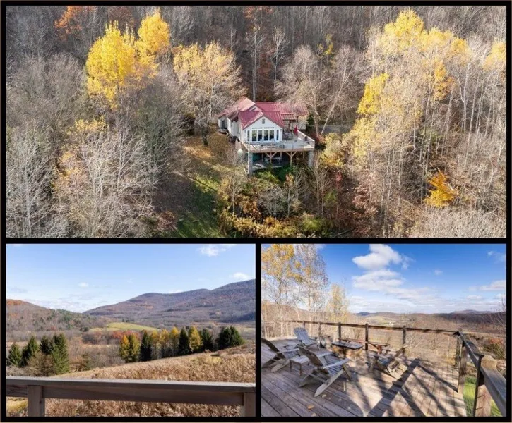 Nestled in a storybook setting on 7.5+/- acres with sweeping valley and mountain vistas, this picture-perfect Contemporary Cottage is surrounded by abundant perennial gardens and timeless natural beauty. Step inside to a beautifully designed custom kitchen with integrated appliances and generous workspace that is seamlessly open to a large dining area that invites gathering and lingering over morning coffee or evening meals. The great room is truly the heart of the home - vaulted ceilings, transom windows, and double glass doors that frame the landscape like a living painting, while the wraparound deck just beyond extends your living space into the open air. Whether bathed in sunrise or glowing in twilight, this is a space where nature becomes part of your everyday experience. The primary suite becomes its own tranquil retreat, complete with a walk-in closet and a custom Marble tiled spa-style shower. A second bedroom and full first-floor bath provide easy comfort for all. Upstairs, a cozy loft offers a delightful flex space - perfect for curling up with a favorite book, unwinding, or accommodating additional sleeping space. Tucked on the lower portion of the property is a charming bonus structure - ideal as a "guest house" or greenhouse for the garden enthusiast And for the ultimate touch of relaxation? Step into the Michael Phelps Challenger swim spa, where you can unwind under the open sky or enjoy an invigorating swim session year-round! And for added peace of mind, the home comes equipped with a generator. This is a property that lives gracefully indoors and out - serene, beautifully cared for, and a rare opportunity in a truly storybook setting. Truly a MUST SEE!