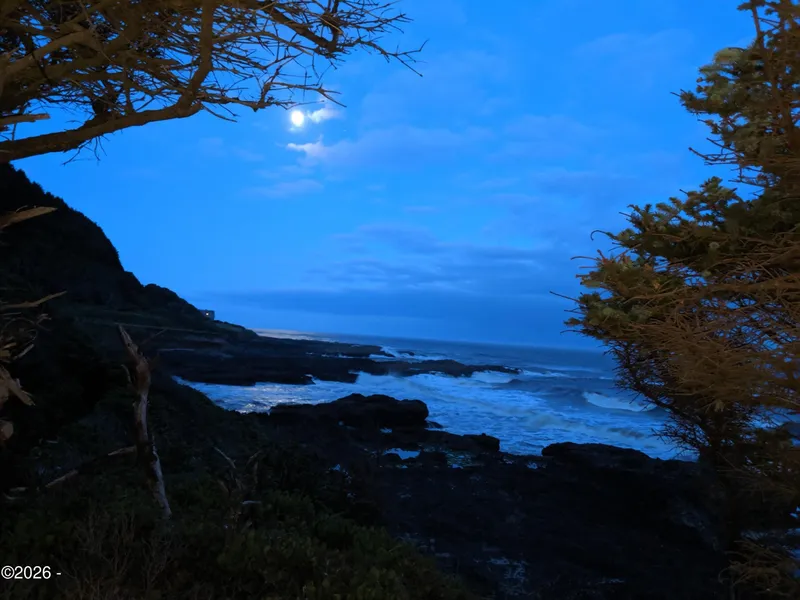 Known as the Blue Pearl this 1945 quintessential coastal cottage perched on basalt rock looking out over the pacific ocean is looking for new owners. Located just south of the seaside village of Yachats this property offers privacy and proximity to all the cool amenities Yachats has to offer. Where the forest meets the sea is truly captured in this one of a kind property. The ocean to the west and the forested Amanda Trail is on the east side, leading up to Cape Perpetua . There is a trail that leads down from the cottage to the basalt rocks where you can view up close amazing scenes of crashing waves and ocean wildlife. I said "new owners" but I feel one is just a fortunate caretaker of the cottage. Seller holds an active Real Estate License in OR. 2025 12x12 deck off south side of home. Marmoleum flooring to and floor. New ductless heat pump installed. New landscaping. Driveway regraded and rocked. 10 yr old shake roof and shake siding. Main floor bathroom with walk in shower/vanity/washer/dryer added. Main floor new vinyl flooring installed. Kitchen remodel with new appliances/countertops/cabinets. New membrane roof on "garage". Snd floor roof rafters spray foamed for insulation and covered with shiplap wood siding. plumbing replaced with pex lines. Electric panel upgraded with sub panel in pool house/hot tub.