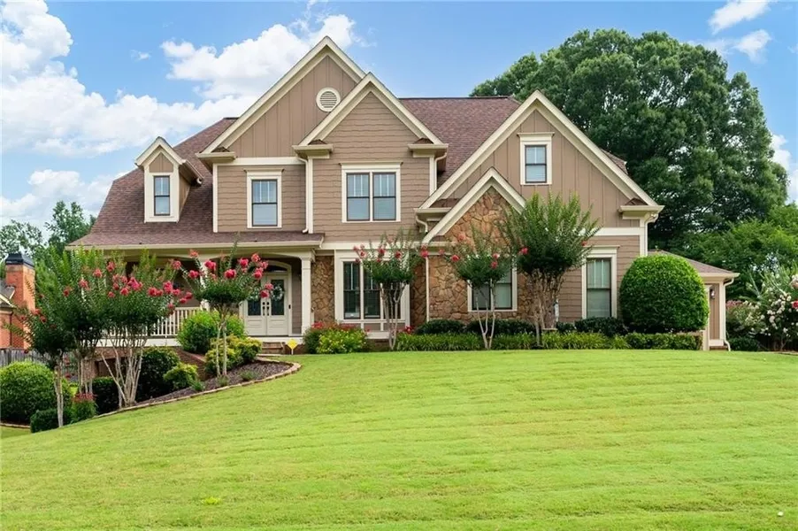 Meticulously maintained and full of charm, this stunning home sits on a level 1-acre corner lot in West Cobb County's sought-after community, The Aviary. From the inviting rocking chair front porch-featuring a beautiful blend of brick, stone, and shake siding-to the incredible landscaping and elegant double-door entry opening into a grand two-story foyer, every detail invites you in. Inside, the upscale trim work and attention to detail are sure to impress. The open dining room can accommodate gatherings of any size and boasts a gorgeous tray ceiling. A stylish butler's pantry with granite countertop and glass-front cabinetry provides the perfect space to display stemware or serving pieces. The main-level primary suite is a private retreat with a cozy sitting area, hardwood floors, double tray ceiling, spa-like bath, large walk in closet and private access to the exterior deck-perfect fo...
