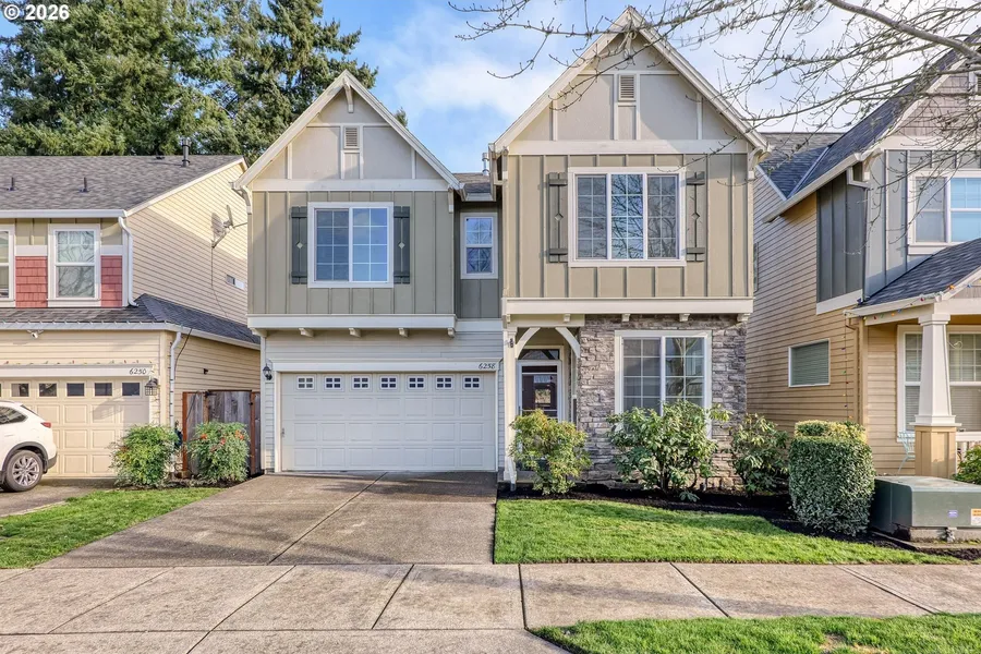 OPEN HOUSE SUNDAY 12-3. A not-to-be-missed, 4-bedroom plus den, ideal for work from home. With a long list of updates, including brand new carpet and window blinds on upper level, hot water heater, primary bath shower and toilet, granite countertops in kitchen, and complete interior paint, this spacious home with open floor plan is ready to move in. Set in Arbor Vineyards community on a quiet street, with fenced yard and covered back patio for year-round entertaining. High ceilings, gas fireplace, gorgeous, easy care main level flooring and fabulous natural light. Kitchen features granite countertops, stainless steel appliances, gas range, built-in microwave, and eating bar. Convenient to both Hillsboro and Beaverton's shopping, restaurants, healthcare services, major employers including Nike, Intel, & Tektronix, Meriwether & The Reserve golf courses, parks and recreational facilities. HOA includes front yard maintenance.