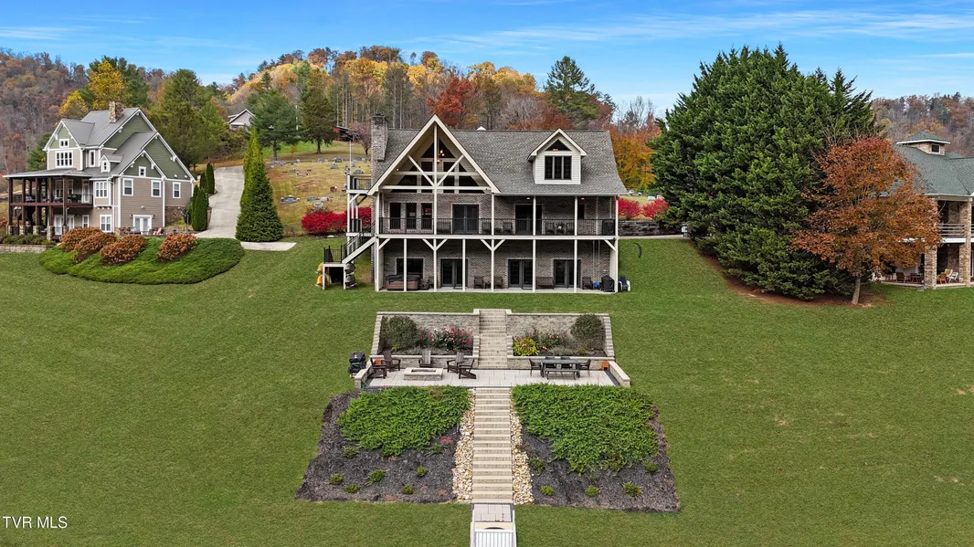 Escape to your own private lakefront sanctuary with nearly 5,000 finished square feet of refined rustic elegance. Leave the worry at the door when stepping into this fully furnished beauty. This 4-bedroom, 4.5-bath retreat is designed for both grand entertaining and intimate moments, where every window frames breathtaking views of the lake and surrounding mountains. The expansive great room features soaring cathedral ceilings with exposed beams, a floor-to-ceiling wall of windows, and a stately brick fireplace-perfect for cozy evenings by the fire or gathering with friends after a day on the water. The chef's kitchen and open dining spaces flow seamlessly to multiple decks, offering endless opportunities for indoor-outdoor living. Four spacious bedrooms, each with their own luxurious bath, provide private comfort for family and guests. The lower level offers additional living space ideal for recreation, media, or quiet relaxation, while the oversized decks and outdoor areas overlook pristine lake waters. What makes this property truly unique: you own not just the shoreline but the land that runs beneath the lake and across to the mountain ridge beyond-ensuring that the spectacular views you wake up to each morning are yours to keep forever. Experience life where the water meets the mountains, in a home that blends timeless craftsmanship with unforgettable natural beauty. *Buyer and buyer's agent to verify all information contained herein. Deemed reliable, but not guaranteed. *Equal Housing Opportunity
