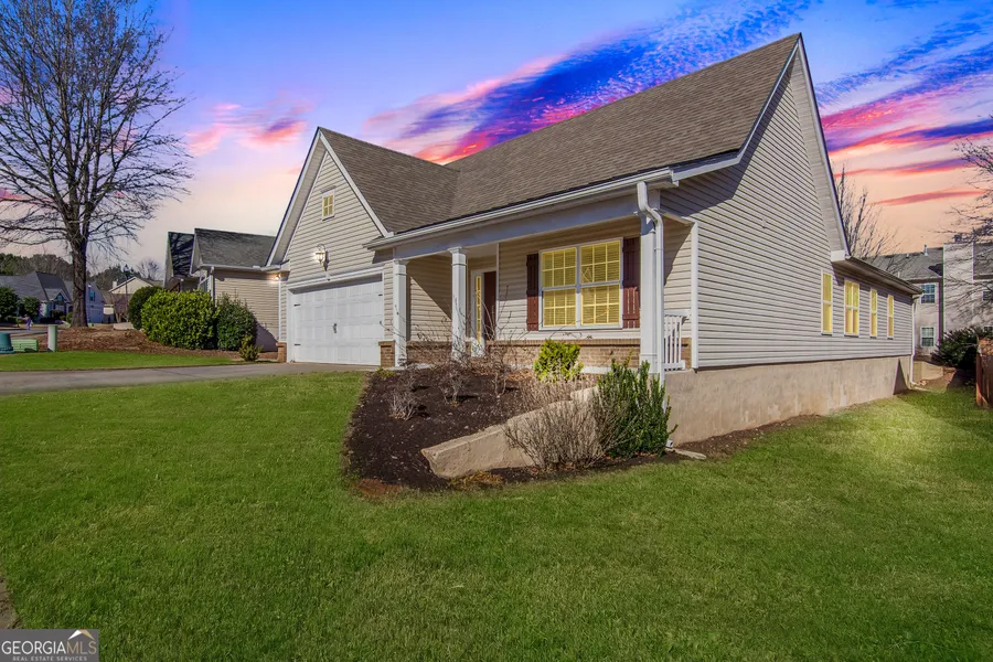 Are you looking for a true STEPLESS-Ranch in a very desirable neighborhood? Welcome to 112 Village Drive where comfort and convenience come together. This lovingly cared for craftsman style RANCH home boasts an inviting entryway with hardwood flooring throughout the majority of the home. As you enter the home, you are greeted with two comfortably sized secondary bedrooms separated by a full bathroom at the front of the home. The entryway leads to the spacious kitchen featuring plenty of counter space, cabinet storage, pantry, breakfast bar and upgraded stainless steel appliances including a Bosch refrigerator, GE gas range & LG microwave! The kitchen offers a view to the open concept living area that includes an additional dining area that flows into the family room with a lot of nice, natural light. The spacious family room with high ceiling offers a tranquil setting with a marble tile accented gas fireplace for those cold winter evenings and additional space to be used as a study, office or additional seating area. Enter French doors that lead to the oversized, trey ceiling primary bedroom that is located at the rear of the home for added privacy. The ensuite primary bathroom offers double vanities, a garden tub with oversized window for ultimate relaxation and an oversized, tiled walk-in shower. There is plenty of storage available in this home with a large walk-in closet and spacious secondary closets. For entertaining family and friends, there is a separate dining room that will allow seating for up to 12. Delight in the sunset each evening as you dine on the oversized, covered patio or as you take a sip of coffee each morning. The patio that overlooks the spacious backyard offers a great space for enjoying time with friends and family. This home is truly move-in ready with a roof that is only 10 years old, a water heater less than 7 months old, a two-year old HVAC system and upgraded kitchen appliances that are just two and three years old. The interior of the home and kitchen and bathroom cabinets have just recently been painted. This location can't be beat being located in a nice, quiet neighborhood with friendly neighbors and being minutes away from shopping, restaurants, Northside Hospital, the quaint downtown areas of Canton and Woodstock and Hwy 575! Don't miss this opportunity to live in a great Canton neighborhood with low HOA fees! Schedule a showing today!