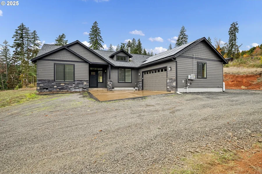 Modern Farmhouse on 2.7 Acres with Pool & Solar Power. Experience refined country living in this 2019 custom-built single-level home. Blending modern design with farmhouse charm, this home welcomes you with expansive windows, a floor-to-ceiling stacked stone wood-burning fireplace, and open-concept living spaces filled with natural light. The gourmet kitchen is a chef's dream, featuring a massive island, slab granite countertops, gas range with convection oven, stainless steel appliances, and a spacious butler's pantry for additional prep and storage space. The primary suite offers comfort and sophistication with luxury vinyl plank flooring, granite-topped vanities, a generous walk-in closet and separate shower and bathtub. Three additional large bedrooms and a full bath provide space for family, guests, or a home office setup. Step outside to your private backyard retreat complete with a large trex deck, covered patio and swimming pool (38' x18') - perfect for relaxing or entertaining. This property features a 25 panel Enphase solar array, tankless water heater, RV hookups w/ electrcity, pump house and exceptionally low utility costs. This home combines luxury and efficiency in one exceptional package.