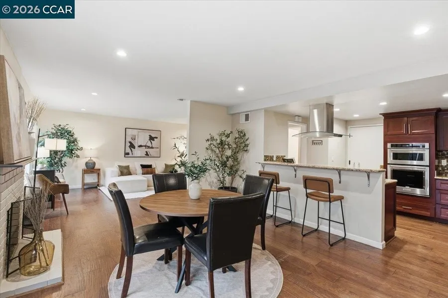 This stunning Concord home offers an open floor plan with rich engineered hardwood floors, a chef's kitchen featuring granite countertops, backsplash, and stainless steel appliances, plus beautifully updated bathrooms. Living, dining, and kitchen spaces flow seamlessly for effortless entertaining. Enjoy a spacious, private backyard with ample shade and a custom bocce ball court-perfect for outdoor gatherings. Additional upgrades include fresh paint, a new vanity, dual-pane windows, and updated fencing. Prime Concord location near Walnut Creek, BART, shopping, dining, trails, and top private schools. No HOA.