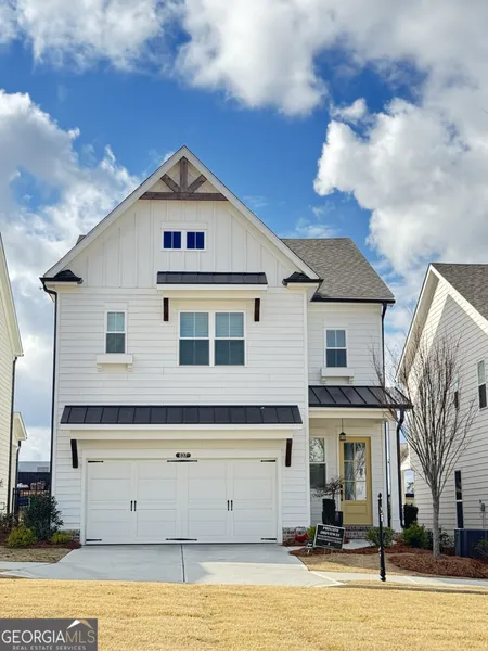 it's a rare opportunity! Welcome to a nearly new, one-year-old home in Palisades at Sawnee Village, where modern comfort meets everyday convenience. This thoughtfully designed residence offers three bedrooms, two and a half bathrooms, a two-car garage, and a spacious open layout filled with natural light. The main level flows effortlessly, centered around a stylish kitchen with white cabinetry, a chimney-style hood, and quartz countertops. A space that feels both elegant and functional for daily living. Upstairs, the primary suite provides a private retreat with a spa-inspired bathroom, while the additional bedrooms offer flexible space for family, guests, or hobbies. Hardwood flooring extends across the main level, the primary bedroom, the staircase, and the upstairs hallway. A loft on the second floor creates the perfect spot for a home office or quiet reading corner, and the laundry r...