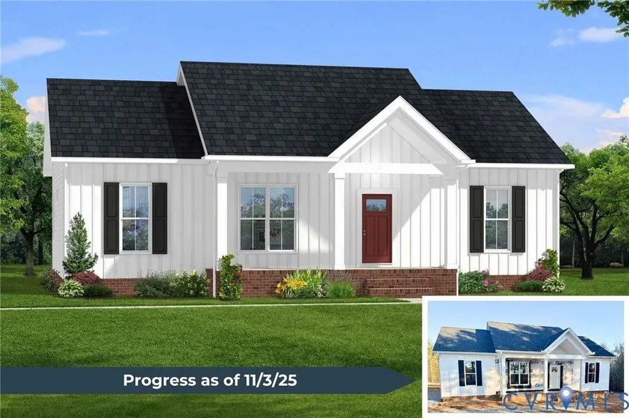 Beautiful 3-BEDROOM, 2-BATH home offers a peaceful setting with thoughtful design & quality finishes. This OPEN FLOOR PLAN combines the kitchen, dining, & living areas into a spacious GREAT ROOM with a CATHEDRAL CEILING, perfect for gathering. The KITCHEN features GRANITE counters, MERILLAT CABINETS, a central ISLAND & a PANTRY. LVP FLOORING runs throughout the main living spaces. Don't miss your chance to make this Rock River retreat your own! Schedule a showing today and experience the best of small-town charm and historic allure. Located on a large 3 acre lot in Charlotte Courthouse. Slated for completion December2025!