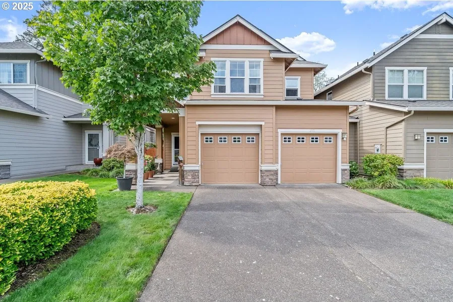 4 bedroom outstanding craftsman style home that has been impeccably maintained. Open concept with high ceilings, hardwood floors through out main level and newer carpets upstairs. Kitchen has high quality Kitchen Aid appliances and beautiful cabnetry. Primary bedroom has large walk-in closet, soaking tub and shower. Backyard is fully fenced with two apple trees and a water feature. Deck has a roll out retractable awning. Property backs to forested area. Also included are central air conditioning, electronic air filter and built in garage storage. Home is close to light rail, Nike, high tech & Streets of Tanasbourne.