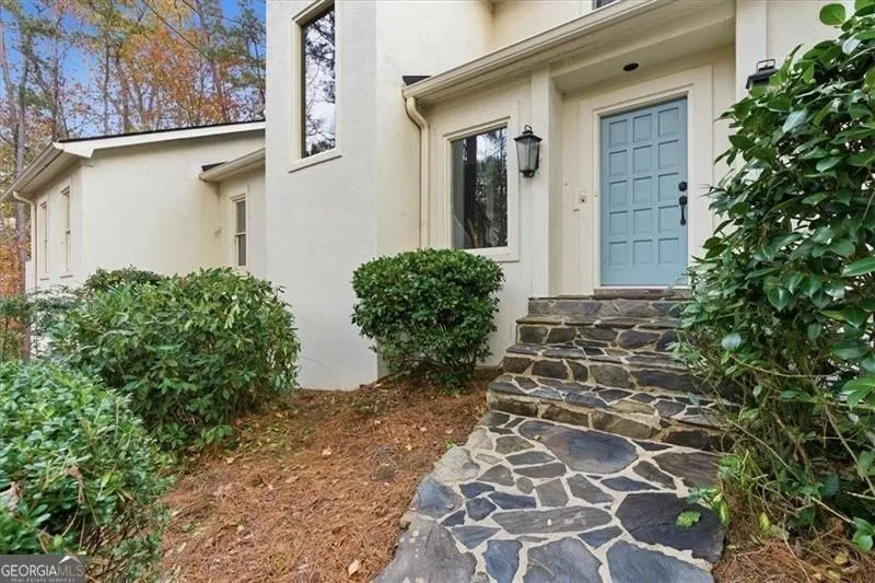 Experience the perfect blend of luxury, privacy, and location-a rare opportunity to own a wooded East Cobb sanctuary within one of metro Atlanta's most desirable neighborhoods and top-rated school districts. Welcome to your very own private wooded retreat, an elegant 4 bedroom, 4.5 bath chalet secretly nestled within an exclusive enclave of only four homes in the highly coveted Walton High School district. Set on over 2 acres of beautifully landscaped grounds, this residence offers over 3,600 square feet of refined living space, blending warm natural finishes with modern luxury in a serene, nature-filled setting. A light-filled foyer provided by skylights welcomes you inside, giving way to an oversized, centrally located sunken living room lined with glass doors that flood the space with natural light and offer picturesque views of the surrounding trees. This inviting centerpiece creates a seamless connection between indoor comfort and the tranquil outdoor landscape. The main level's open but separate concept design flows effortlessly into the updated kitchen, a chef's delight featuring granite countertops, a gas cooktop, wall oven, and a cozy breakfast area with access to a large screened-in sunroom-perfect for morning coffee, relaxed evenings, or casual dining with wooded views. Each bedroom includes its own en-suite bath and private balcony, offering comfort, privacy, and natural beauty. The primary suite located on the main level is a true sanctuary-featuring a spacious sitting area, dual-entry walk-in closet, and skylights that bathe the room in soft natural light. The spa-inspired bathroom offers a jetted soaking tub, dual shower and vanities for a retreat-like experience. Adjacent to the primary suite is a versatile flex room, ideal for a home office, nursery, private gym, or reading lounge, providing flexibility to suit your lifestyle. Upstairs, you'll find two generously sized bedrooms, each with its own private bath and balcony, creating light-filled retreats with peaceful treetop views. The fully finished walkout basement expands your living space with a potential recreation area and media space, with an additional bedroom and full bath, making it ideal for guests, entertaining, or multi-generational living. Large windows and direct outdoor access keep the lower level bright and inviting. Outside, you'll be surrounded by mature trees, lush landscaping, and the gentle sounds of a natural creek that borders the property, while relaxing on your stoned patio overlooking the garde. Multiple decks and outdoor living spaces offer endless opportunities to entertain or unwind. A new roof (installed in 2023) provides lasting value and peace of mind. Perfectly located near The Avenues of East Cobb, Roswell Road, Johnson Ferry Road, Sandy Springs, and Roswell, this home offers quick access to premier shopping, dining, and conveniences. Outdoor enthusiasts will love the proximity to the Chattahoochee River National Recreation Area and nearby parks and nature preserves, while entertainment lovers will enjoy being a short drive from The Battery and Truist Park-home of the Atlanta Braves-offering world-class dining, shopping, and events year-round. Welcome Home to one of East Cobb's most well kept secrets!