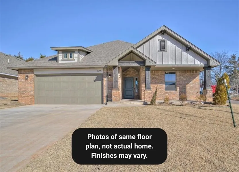 Ask about our incentives! The Zion is a beautifully designed 1,502 square foot floor plan located in Noble, just 10 minutes from the OU campus, offering efficient living without sacrificing comfort or style. This new construction home features 3 bedrooms, 2 bathrooms, and a 2-car garage, ideal for first-time homebuyers, growing families, or down-sizers. The open-concept layout connects the kitchen, dining area, and living room, creating a bright, welcoming space anchored by an electric fireplace. The primary suite includes a spacious bedroom (15' x 12'), a private bath, and a walk-in closet for everyday ease. Two additional bedrooms and a full hallway bathroom provide flexible options for guests, kids, or a home office. With a covered front porch, covered patio, and a dedicated utility room, this home delivers practical living with timeless appeal in a convenient Noble location.