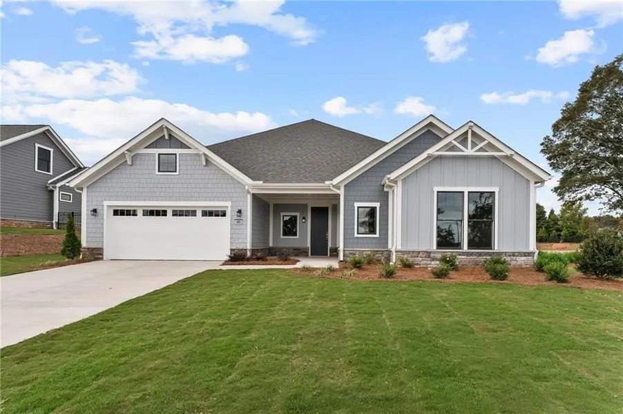 Desirable Provenance Home with gorgeous open floorplan! This conveniently located 55+ community offers just 28 exclusive luxury ranch homesites. Enjoy low-maintenance living, open and thoughtfully designed floorplans, and a vibrant lifestyle, all in a prime location! The Provenance offers the most square footage of our luxury ranch floor plans, designed for elegant entertaining. This home features two first-floor owner's suites with lavish baths, a bright den/office, and a dramatic vaulted living room with beams. The expansive Gourmet kitchen with large walk-in pantry is a chef's dream, while the 3-car garage offers ample storage. High-end finishes include 8-foot doors, shiplap gas fireplace, quartz countertops, zero-entry tile showers, Pella windows, no carpet and stainless GE appliances. The home wraps around a private, fenced side courtyard with covered and uncovered outdoor spaces. The Courtyards at Post Road offers easy living with included yard maintenance, a dog park, and a firepit pavilion. Complete and move in ready!!