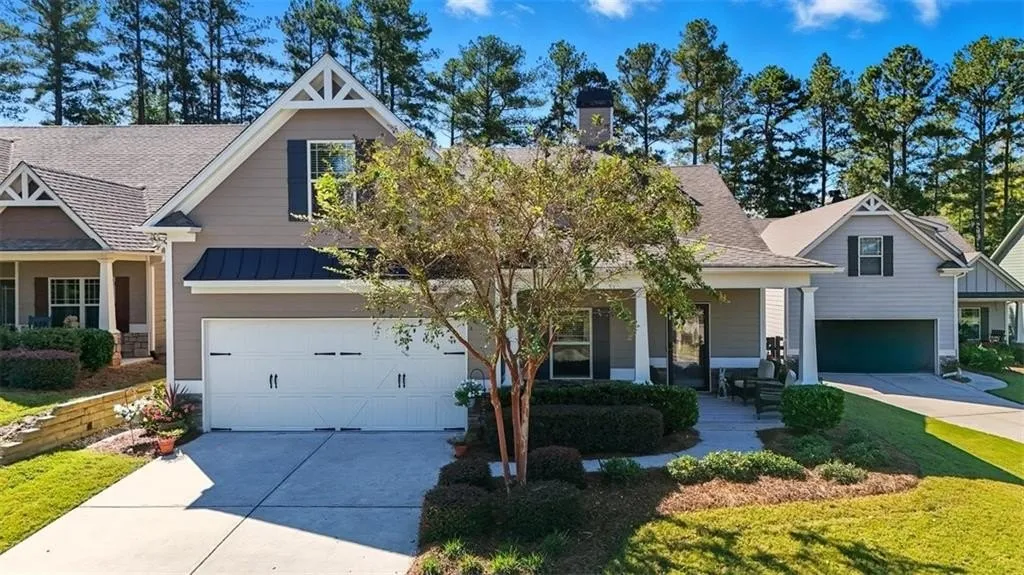 Buyer incentive of $7k offered towards closing costs, price reduction or interest rate buy down plus HOA fee paid through 2025. Welcome to this stunning, well-maintained home, nestled in The Retreat at NatureWalk - a sought-after neighborhood within the vibrant Seven Hills community. This charming Craftsman-style residence combines spacious, single-level living with the ease of an active adult lifestyle. This open-concept layout, showcasing a cathedral ceiling and hardwood floors throughout the main level, is perfect for entertaining, family visits or just enjoying quiet moments. The spacious Family Room offers a gas-log fireplace, and the generous Kitchen features a 10' island, granite counters, walk-in pantry, plenty of cabinets and work surfaces, and a bright, casual Dining area. This thoughtfully designed floor plan provides a versatile flex room that's ideal for a home office, den, music or craft room, two Bedrooms on the main and a Bonus (3rd) Room upstairs, and an elegant sunroom with stone fireplace, windows with screens, and ceiling fan - perfect for year-round relaxation. Additional highlights include a coat closet, Laundry Room off the Kitchen, linen closet, walk-in closets, and wide doorways for easy accessibility. This 2-car garage comes with a golf cart parking/workshop/storage space and separate storage closet. Beautiful outdoor spaces are plentiful, starting with a rocking chair front porch and open view of Cedarview Drive. The fenced backyard, in addition to being one of the largest and more private in the subdivision, backs up to a wooded buffer. The upgraded, custom-designed patio makes the perfect setting for a coffee, a meal, cocktail or a best-selling novel. Be mesmerized by the fabulous sunset views from either the Sunroom or the front porch. Exterior just painted. Yard maintenance, including the fenced backyard, provided by HOA. Residents enjoy The Retreat's private pool (age requirement: 25 and up), clubhouse, lounge area, whirlpool, grilling and entertainment areas (ask about touring the amenities). Plus full access to Seven Hills' extensive amenities including pools, athletic courts, and more. The Retreat is conveniently located for shopping, dining, healthcare, golf, Lake Allatoona, Cobb Pkwy/Hwy 41, events and more! This home is move-in ready and blends comfort, style, and convenience in one perfect package.