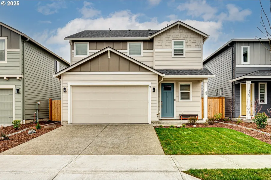 Stunning upgraded 2024 home! Located in a beautiful neighborhood with quick access to Padden Pkwy & highways, plus a neighborhood paved walking trail, park, and dog park. Fully landscaped backyard. HOA-maintained front yards for effortless curb appeal, this 3-bed, 2.5-bath beauty is designed for comfort and style. The open-concept great room flows into a sleek kitchen featuring quartz counters, under-cabinet LED lighting, pot filler and a beverage cooler. Enjoy 9' ceilings, full laminate flooring on the main level, and 2" white faux wood cordless blinds. Thoughtful smart home features include a WiFi thermostat, whole-home surge protection, a WiFi garage door opener, and a dedicated circuit for a future EV charger. Fridge, washer & dryer included-move right in! Solar-ready pre-wire ensures a sustainable future. With plenty of space for family and entertaining, this home is the perfect ble...