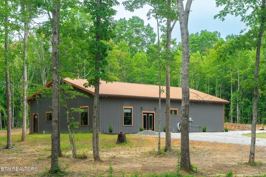 Welcome to 294 Big Piney Loop, located atop the remote Wilder Mountain, this home features 5 acres with a detached garage, RV/Washer Dryer hookups and a pond. Constructed in 2023, this Barndominium has an attached 3 bay garage with commode, numerous picture windows and 9 to 16 feet tall ceilings throughout. Front bedroom features a loft for extra storage and oversized windows. This bedroom also has a walk in closet and full bathroom that loops back into the main hallway. Enter the great room and find stainless appliances, apron sink and hand built island. Master suite features built in entertainment center, roll up 6 foot window and master bathroom with tile shower. Secret sliding mirror gives access to a reinforced safe room that loops back to the front door; doubling as a storm shelter or advantageous close quarter combat door for any unfortunate crook who might test their home invasio...