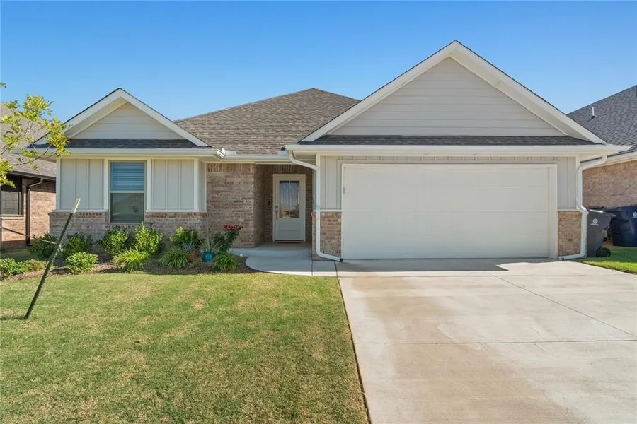 Welcome home to this 3-bed, 2-bath beauty in Piedmont Schools! It's got all the right touches - a cozy office nook off the laundry room, smart home features, storm shelter, tankless hot water heater, and garage door opener. Step out back to a covered patio perfect for relaxing while the sprinkler and gutter systems keep things easy and low-maintenance. This home is all about comfort, convenience, and everyday living done right! *Great Plains Bank (Doug Caudill) offering $1,500 toward closing costs or rate buy-down (restrictions apply).*
