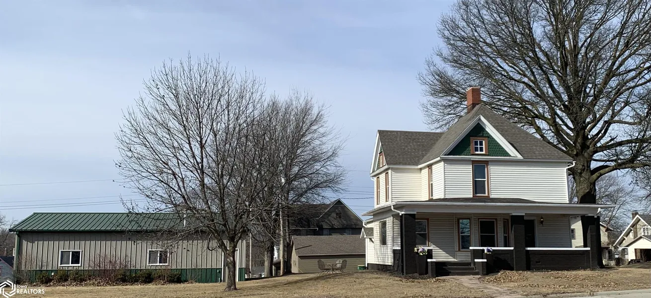 Welcome to this impressive, completely updated two-story residence nestled on two generous lots, featuring a 45' * 30' heated and cooling equipped detached shop. From the inviting open front porch with its to the traditional foyer with grand staircase and hand-carved balusters, this home beautifully blends timeless character with modern convenience. The main level offers a spacious living room and formal dining room with a tile-surround fireplace, an office/playroom and a main-floor bedroom as well as laundry room. The heart of the home is the chef's kitchen, featuring new high-end appliances, a gas range centered in an oversized island, custom tile backsplash, and sleek quartz countertops that extend throughout. New dishwasher, microwave, fridge are included. Adjacent, you'll find a convenient laundry room, a full bathroom with granite counters, and a practical mud-room with direct access to the backyard. Upstairs, the layout includes four additional bedrooms with Jack and Jill bathroom. Huge, dry basement excellent for storage. Mechanical updates include a new furnace and a 50-gallon hot water heater, newer windows, roof, electric, doors, water meter & line, light fixtures and fresh paint and stain. So much to see with this property, so call today!