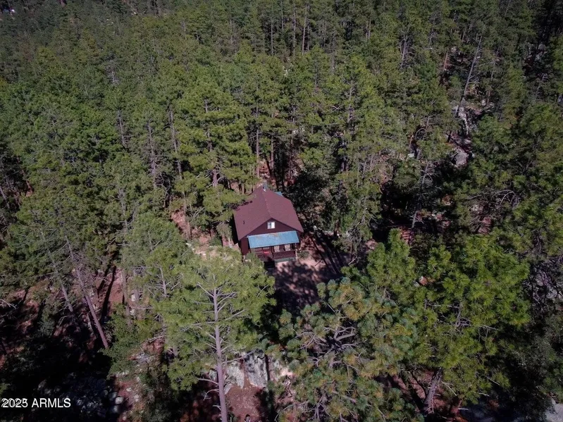 Situated on a secluded parcel at the end of a dead end street, bordering Nat'l Forest. Back balcony overlooking forest perfect spot to enjoy a cup of coffee while watching the sunrise. Walking distance to Main Street but still feels very remote! Nothing to do but move in. Lots of level land for parking, playing & outdoor fun. New flooring, fresh paint in & out too. This cabin has a great floor plan with bedroom downstairs & huge loft for guests. Cozy wood fireplace, washer/dryer & upgraded fixtures make this one a winner. There is a detached garage that will fit large ATV's. Extra water storage tank holds reserve water from a private water company.