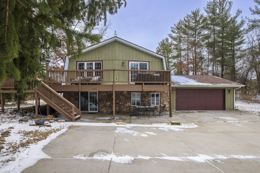 Spacious 3-bedroom, 2-bath, two-story home located in the desirable Crown Point School District, offering over 2,000 square feet of living space to spread out and enjoy. The upper level features two generously sized bedrooms and a full bath. Throughout the home, you'll appreciate the beautiful dark wood six-panel doors and matching trim. The main level offers versatile living with a rec-room and an additional bonus room centered around a stunning large stone fireplace. Step outside to the patio and take in the scenic yard--perfect for entertaining or relaxing. Situated on over half an acre, the property is surrounded by mature trees and ample outdoor space.