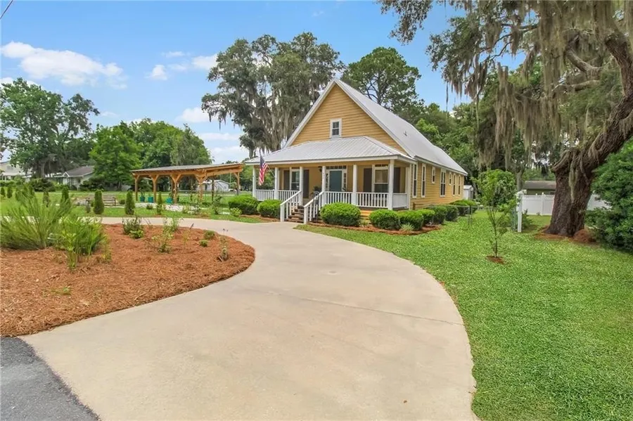Situated on a desirable corner lot with just a short walk to Downtown Darien, this 4 bedroom, 3 bathroom home offers low maintenance living. Built in 2006 with a spacious floor plan of 2,300 sqft, the home is powered by a full-house solar panel system for energy efficiency and minimal utility costs and provides excellent back up during power outages. The 4th bedroom/bonus room and full bath upstairs make the perfect guest room with the 2nd floor having a separate HVAC system. The screened porch off of the master bedroom offers a nice place to relax and enjoy the spacious side yard with an Oak Tree canopy. Master bedroom and master bath plus 2 additional bedrooms and a full bathroom on the main floor make a functional floor plan. City park across the street provides green space views and lasting privacy. Convenient location with nearby dining and shopping! 1 hour to JAX/SAV.