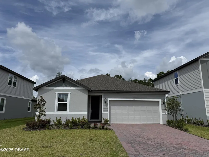 Introducing a brand-new, energy-efficient home available for immediate occupancy, situated adjacent to wetlands conservation area so no rear neighbors. This four-bedroom, two-bathroom residence features modern design elements and an inviting open floor plan that is sure to captivate. Upon entering through the foyer, you are welcomed into the heart of the home, where the living room, dining room, and kitchen seamlessly connect. The space is enhanced by volume ceilings, 8-foot interior doors, and contemporary plank-style tile flooring throughout the main living area giving it a cohesive look. The modern kitchen is a culinary enthusiast's dream, equipped with stainless steel appliances, tall cabinets, under-cabinet illumination, stylish backsplash, pantry, and a breakfast bar illuminated by pendant lighting for casual dining. The primary suite awaits, showcasing a tray ceiling, a spacious walk-in closet, and an ensuite bathroom featuring a nicely sized walk-in shower. In addition to the primary suite, three additional bedrooms provide ample space for all your needs. The interior laundry room is conveniently equipped with sink for added practicality. Don't miss the covered lanai, perfect for enjoying fresh air and taking in the serene backyard that overlooks a wetland conservation area. Located in the tranquil community of Legends Preserve with fantastic amenities, including pool with cabanas, a tot lot, and scenic trails. Positioned on International Golf Drive alongside the renowned LPGA golf course, this property provides easy access to both I-4 and I-95, as well as Daytona International Airport. Lets not forget this community is a short drive to Daytona's famous beach. This home is truly a must-see!