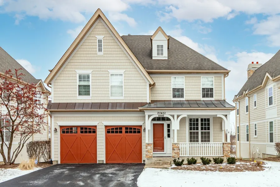 Welcome to this spectacular Deer Park Estates single-family home showcasing gorgeous interiors and stunning views throughout. Freshly painted and beautifully finished, the home features rich hardwood floors and a bright, open layout designed for both everyday living and elegant entertaining. The gourmet kitchen impresses with white cabinetry accented by polished nickel hardware, granite countertops, glass subway tile backsplash, stainless steel appliances, and a large island with seating and pendant lighting. The inviting family room centers around a cozy fireplace, while double French doors open to a private study. A butler's pantry connects the kitchen to the formal dining room, perfect for hosting gatherings. Upstairs, the luxurious primary suite offers two custom walk-in closets and a spa-inspired bath with dual vanities, a soaking tub, and a separate shower. Three additional generously sized bedrooms complete the second level, including one with a private ensuite and a shared hallway bath. The finished walkout lower level provides an expansive recreation space and abundant storage. Ideally located near shopping, the train, major access roads, and parks, this exceptional home seamlessly blends style, comfort, and convenience in one of the area's most desirable communities.
