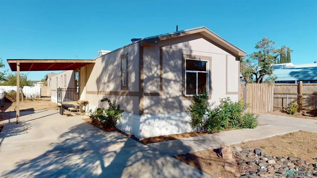Built in 1998, this Redman manufactured home offers a comfortable split floor plan with 3 bedrooms, 1 full bathroom, and 1 three-quarter bathroom. Recently remodeled, the home features new flooring, textured walls, fresh paint, updated windows, and modernized bathrooms throughout. The living room opens to a welcoming dining area and a kitchen updated with newer cabinetry. The spacious master bedroom includes a walk-in closet and a full private bathroom with a jet tub and a separate walk-in shower. The two additional bedrooms are generously sized and share a three-quarter bathroom. The home is cooled with an evaporative cooler and heated by a central gas system. Utilities include city water, city sewer, natural gas, and trash service. The yard is fully fenced, offering added privacy and security. According to the Luna County Assessor, the manufactured home was born on its current location but is not currently considered real property. Located close to local businesses, schools, and the hospital, this property combines comfort, convenience, and affordability in one great package.