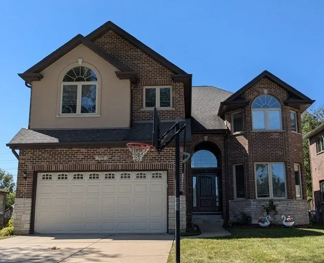 Welcome to this beautiful, all-brick custom home nestled on a quiet street. Boasting 5 spacious bedrooms and 3.1 bathrooms, this home offers flexible living with a main-level room that can serve as either a bedroom or a home office. The main level features 9-foot ceilings and gleaming hardwood floors (installed in 2023), with a dramatic double-height ceiling in the family room that adds an airy, open feel. A gourmet kitchen overlooks the patio and expansive fenced backyard, complete with granite countertops, 42-inch cabinetry, a large pantry, and stainless steel appliances. Perfect for entertaining or family living, this sunny kitchen is truly the heart of the home. Upstairs, the luxurious master suite offers a vaulted ceiling, two walk-in closets, and a spa-like bathroom with a Jacuzzi tub and separate shower. The second and third bedrooms share a Jack-and-Jill bathroom, while the fourt...