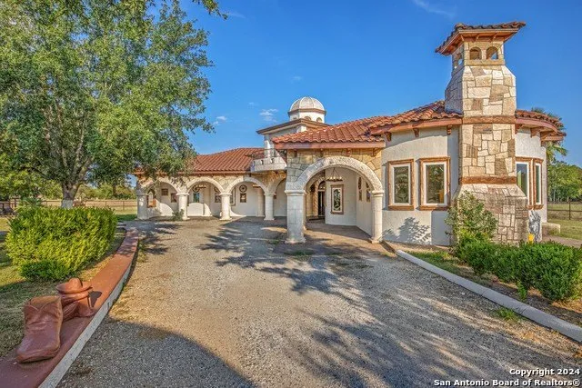 Owners pride shows throughout this custom home built in 2014 in Atascosa ,Tx that sits on 8.24 acres of peaceful country living, but still minutes away from the city! Open floor plan with 3166 square feet perfect for entertaining! 4 bedrooms, office room, and 3 full baths. Enjoy yourself after a hard day at work with your jacuzzi in your master bedroom! Property also has detached oversized garage and can also be used as storage. Horse stables also available on property.