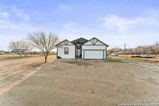 Welcome to this stunning 5 bedroom 2 bath, recently constructed single-story home, offering a perfect blend of modern luxury and country living. Nestled on a 1.62-acre lot, this property includes a beautifully designed 2,180 sq-ft main house, a cozy 2-bed/1-bath mobile home with a partial metal roof over, and a 36x60 stable with 10 12x12 stalls, perfect for equestrian enthusiasts. The main house boasts LVP flooring throughout (zero carpet), vaulted trey ceilings in both the living room and primary bedroom,