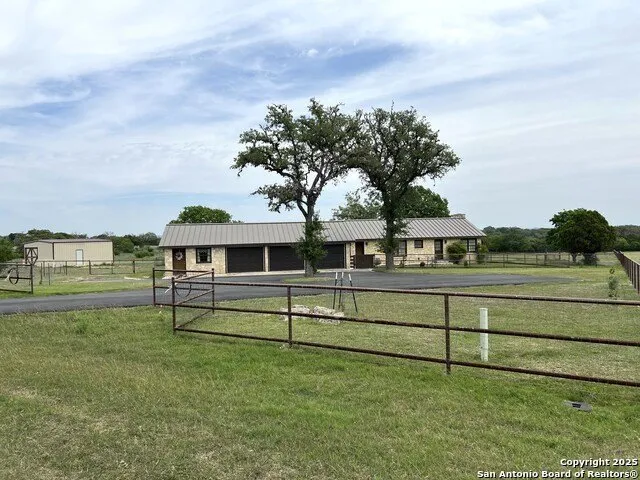 Opportunity of a lifetime for this truly unique 4br/2bath hill country ranch house, detached 3 car garage with guest quarters, 24X30 2 stall barn on 5.21 acres and is one of the original residences in Bridlegate Ranch. Pull your wagon with the kids and pool toys to the amenity center pool, clubhouse, fitness center, guest rooms, tennis/pickleball/basketball court, sand arena and mail center. The gated 2000+acre ranch is high fenced and bordered by the Medina River with a community river park for picnics, disk golf and soccer. Through your back gate bike, hike or go horseback on the bridlepath that traverses the entire ranch. A 10-minute drive to the Medina River Park and downtown Bandera Texas restaurants and shoppes with tons of western culture, popular entertainment venues and gathering places.