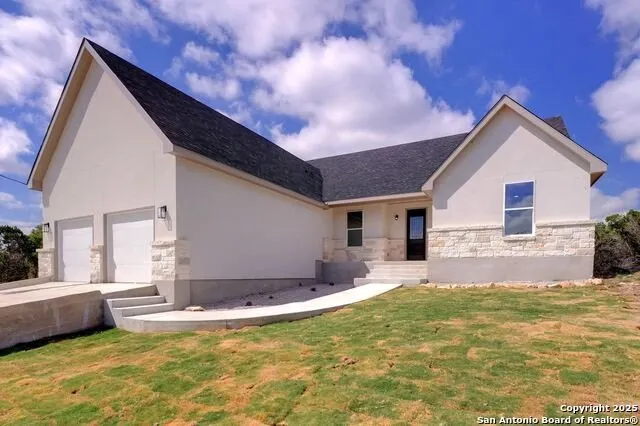 Welcome to this beautiful 3-bedroom, 2.5-bath home on a 1-acre lot in the gated Summit Estates at Fischer. Spanning 2,592 sq. ft., this home perfectly blends modern comfort and Hill Country charm. The open-concept family room features soaring ceilings and an elegant electric fireplace, creating a warm and inviting atmosphere. The chef's kitchen includes LG stainless steel appliances, quartz countertops, and classic black hardware, offering timeless style and functionality. A private home office with double doors provides an ideal workspace, while the 12' x 20' bonus room above the garage is perfect for a playroom, media space, or hobby room. The laundry room with a pet washing station adds everyday convenience and thoughtful design. Relax outdoors on the spacious 30' x 14' covered patio with ceiling fans-perfect for entertaining or enjoying peaceful Hill Country evenings. This home delivers quality craftsmanship, elegant finishes, and a relaxed lifestyle, all just minutes from Canyon Lake and Wimberley. Includes a 1/2/10 builder warranty for added peace of mind.