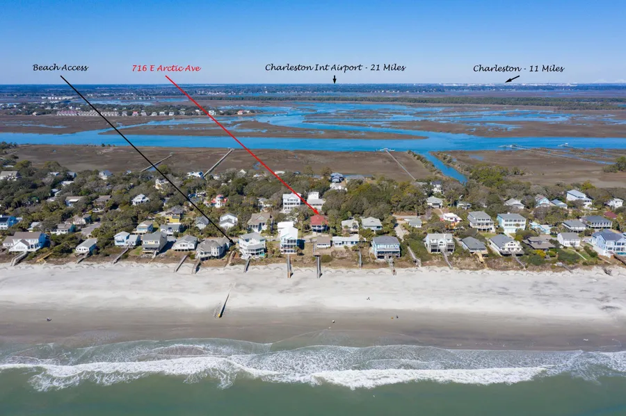 Just across the street from the beach, and with nearby public access, this 2,218 square foot well-maintained home is situated on a desirable street-to-street lot configuration while it still retains splendid views of the beach and ocean. This elevated home, which is reachable by an elevator, has a superb layout and consists of 3 bedrooms, 3 full bathrooms, living and dining room, large eat-in kitchen and an additional multi-purpose room. Located at the front of the house, the primary suite includes a large bathroom and closet. The primary bedroom leads directly onto the large balcony that has a great view of the beach. The kitchen/eat-in dining room is situated in the heart of the house and is exceptionally large. Off the front of the kitchen, the house also has a combined diningand living room area, which also has access to the large balcony; making plenty of space available for get-togethers or parties. Off the back of the kitchen is a hallway where 2 more bedrooms of generous size are located. One of these bedrooms has its own bathroom. Off this same hallway is a laundry room, the 3rd full bathroom and a multi-purpose room, with its endless possibilities of how this room could be used (office, den, etc). Down below the house is a large storage room, where you can store your kayak, surfboard, and other beach accoutrements; an outdoor shower; elevator; and parking for 4 cars. The backyard is fully fenced in. Access to the beach is through a path located near the house. Since the house is centrally located on the island, most of Folly Beach's businesses, restaurants and shops are an easily walkable mile away. At the end of Folly, is the Lighthouse Nature Preserve, where you can see amazing views of the Morris Island Lighthouse. Drive off the island and you are less than half an hour from Historic Downtown Charleston.