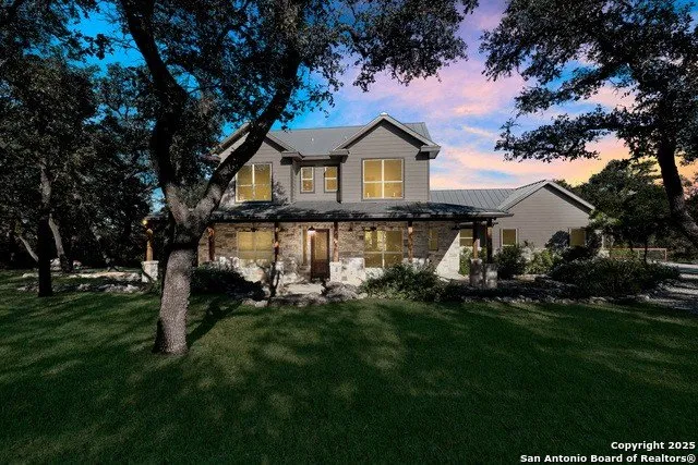 This one-of-a-kind property combines the best of Hill Country charm with thoughtful upgrades at every turn. Set on 4.85 acres and back nearly 600 feet from the road for complete privacy, this home welcomes you with hill country views, expansive covered porches, freshly painted exteriors, and over 1,000 square feet of outdoor living space designed for gathering and unwinding. Inside, custom wood ceilings, exposed beams, and an oversized chandelier set the tone for a home that feels refined yet relaxed. The full masonry fireplace with a wood stove creates a cozy focal point for family nights, while the dedicated movie room brings big-screen comfort right to your doorstep. Outside, you'll find everything you need for both play and peace - a cabana-covered deck, a custom fire pit area, a stock tank pool with pump, and a large playground for the kids. Practical features make life easier...
