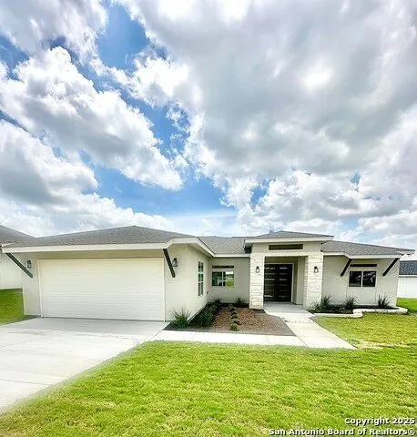 Step into modern luxury with this stunning stone-and-stucco home, where sleek design meets everyday comfort. Soaring ceilings and an open-concept floor plan create an airy, inviting atmosphere, enhanced by an abundance of natural light streaming through large sliding glass doors. The gourmet kitchen is a showpiece, featuring quartz countertops, custom cabinetry, large island & plenty of storage, perfect for both entertaining and daily living. Tile flooring flows seamlessly throughout, combining style with easy maintenance. Your spa-like master suite offers a serene retreat, complete with a luxurious bath designed for ultimate relaxation. Gather around the elegant fireplace in the spacious living area or step outside to enjoy a beautifully fenced, landscaped yard with a full sprinkler system. Additional features include a modern alarm system for peace of mind and thoughtful craftsmanship throughout. This home is the perfect balance of sophistication, & comfort, ready for you to make it your own.