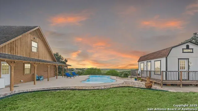 Welcome to Dry Creek Ranch. Discover the perfect blend of rustic charm and modern comfort in Mico, Texas. This beautifully maintained 3-bedroom, 2.5-bath log home offers 2,156 square feet of inviting living space set on 16.64 private acres with breathtaking views of the Medina Valley. The warm kitchen features a bay window with breakfast bar, followed by a large open-concept dining and living area that is perfect for gatherings and entertaining. The spacious primary suite is conveniently located on the first floor, while two additional large secondary bedrooms and a full bathroom are tucked upstairs, providing plenty of room for family or guests. Relax and unwind on the wraparound covered porch or take a dip in the large saltwater fiberglass pool, all while enjoying the peace and quiet of country living. The property also has a 280-square-foot mother-in-law suite which functions as a pri...