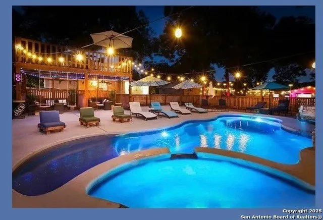 Secluded Dual-Home Vacation Retreat on 1.8 Acres - New Braunfels Step into your very own getaway with this one-of-a-kind property featuring two separate homes and endless entertainment opportunities, all tucked away on 1.8 acres just minutes from the Guadalupe River, Schlitterbahn, and downtown New Braunfels. With no HOA and an existing Special Use Permit (SUP) for a Bed & Breakfast on the main brick home (with potential for the second home to apply as well), this retreat offers unmatched versatility for private living, entertaining, and income generation. The main brick home offers 3 bedrooms and 2 bathrooms, a spacious living room with a cozy woodburning fireplace, a bright dining area with picture windows, and a well-equipped kitchen with generous counter space, island, and breakfast bar. Step out back to a private deck with a jacuzzi, perfect for relaxing under the trees. The second home includes 2 bedrooms and 1 bathroom, plus a charming updated kitchen that flows into the living area. A large deck overlooks the outdoor entertainment spaces, creating an inviting guest or family retreat. The backyard feels like a vacation resort surrounded by mature trees, with a centerpiece heated and cooled inground pool featuring a waterfall, elevated observation deck, and multiple cabanas for shade and relaxation. The pool area also includes four exterior bathrooms, a hot tub, and a fully equipped poolside bar cabana. The pool has even been an income-producing rental for private parties and events, adding another layer of opportunity. Additional highlights include: On-Site Lounge/Party Room - a converted detached garage fully outfitted with sound, lighting, and a bar setup for unforgettable private events. Pickleball Court - the perfect addition for fitness and fun. A property-wide sound system, strategically directed toward the back of the lot to keep the front peaceful. Adding even more value, the current owner is willing to remain for a few months to help train and guide the next owner in operating the Bed & Breakfast, ensuring a smooth transition. This property truly offers a vacation lifestyle at home, blending privacy, entertainment, and income potential in the heart of New Braunfels