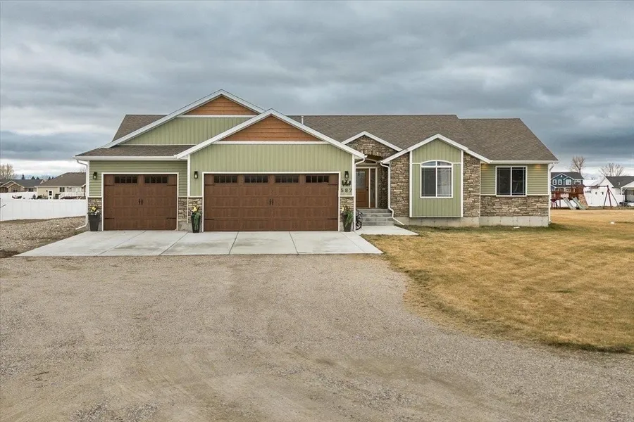 Custom Built Ranch Style home on 1 acre featuring 6 bedrooms and 3 full baths. This home has a country feel with a great open floor plan with an inviting living room having large windows that brighten the home. Beautiful kitchen with ample storage and custom cabinetry with granite counter tops and walk in Butler Pantry. The master bedroom is one to be desired! Vaulted ceiling and walk-in closet, dual sinks with a large vanity, extra linen storage, a walk-in shower, and private toilet. The basement is fully finished with ample storage areas, additional bedrooms have egress windows and featuring large walk-in closets. Covered patio out back to enjoy the evenings after a long day! Property has water shares, two sprinkler systems, garden area Don’t miss the oversized triple car garage that has an additional heating source, large space for workshop/additional auto, fully insulated, and sheet...