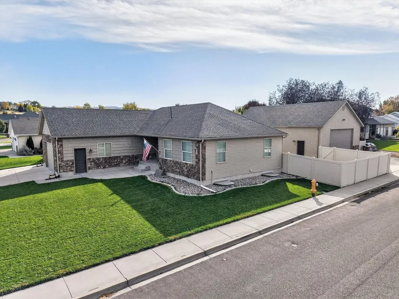 33' x 40' Heated SHOP! This 6-bedroom, 3-bath home offers style, comfort, and functionality throughout. Enjoy vaulted ceilings, granite countertops, and a cozy living area with a gas fireplace. The primary suite features a walk-in closet and private bath. The finished basement includes ample storage, a large family room perfect for entertaining complete with theater screen, projector, and sound system. Outside highlights include sprinkler system with optional use of irrigation water, hot tub wiring, a double-car garage plus a heated 33' x 40' shop with an 11' overhead door and included paint booth, compressor and metal shelving ideal for projects, vehicles, or hobbies. Located in a desirable area with convenient access to local amenities. Don’t miss the opportunity to make this exceptional home yours!