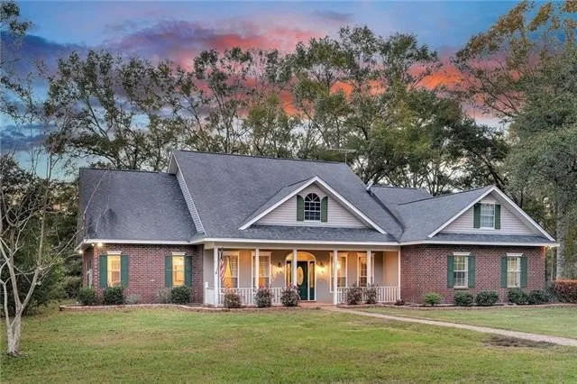 Nestled on over two acres in the tranquil rolling hills of Stone Lake Estates in Folsom, LA, this impeccably maintained brick home offers the perfect blend of charm and functionality. Gorgeous hardwood floors, high ceilings, and a cozy gas fireplace create an inviting atmosphere you'll love coming home to. The kitchen is a bright and spacious haven for entertaining, featuring granite countertops, stainless steel appliances, ample cabinetry, and a generous eat-in island. With four bedrooms, three full bathrooms, and a half bath, the layout is thoughtfully designed for comfort and privacy. Two guest bedrooms boast en suite bathrooms, making them ideal for family or visitors. The expansive primary suite includes a large bathroom with a jetted tub, walk-in shower, dual vanities, a water closet, and an additional closet for extra storage. Step out onto the expansive deck to savor peaceful mornings or relaxing evenings, surrounded by the natural beauty of your private retreat. Additional features include a two-car garage, a storage shed, and a charming front porch perfect for unwinding. Plus, the roof was replaced in 2020, offering added peace of mind.