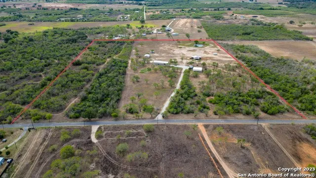 30 /- unrestricted acres 20 miles south of New Braunfels with TWO very well-maintained homes, beautiful 4 stall open air barn, large metal workshop, and a stocked pond! The first home has 1950 sq ft, 3 bedrooms, 2 baths, and is updated with beautiful granite countertops, ceramic woodgrain tile flooring, designer wood burning stove, a large master closet, and much more. The second home has 1320 sq ft, 2 bedrooms, 1 and 1/2 bathrooms, and is an open concept design with plenty of storage, walk-in shower, an